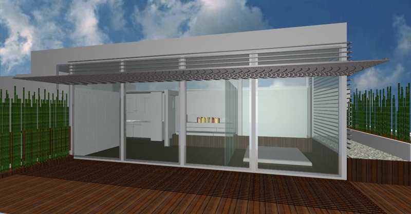 El cerramiento es de cristal y lamas para protección solar, que son abatibles de manera que sirve para interactuar con la terraza, incluso para el desayuno o cualquier actividad que sea necesario protegerse del sol.