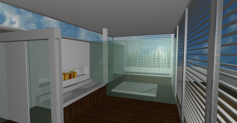 Es un espacio que, si bien es diáfano, tiene un saliente (especie de pasillo) con las dimensiones mínimas. Pensando en que utilidad podía tener, se decidió utilizarlo como baño.