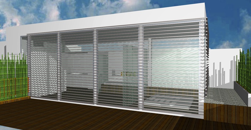 El cerramiento es de cristal y lamas para protección solar, que son abatibles de manera que sirve para interactuar con la terraza, incluso para el desayuno o cualquier actividad que sea necesario protegerse del sol.